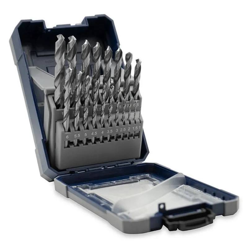 Los Juegos de mechas de Acero Rápido rectificado (HSS 4341) para uso profesional, cuentan con filos destalonados y puntas Split Point en todas las medidas, para mayor precisión y velocidad de corte.