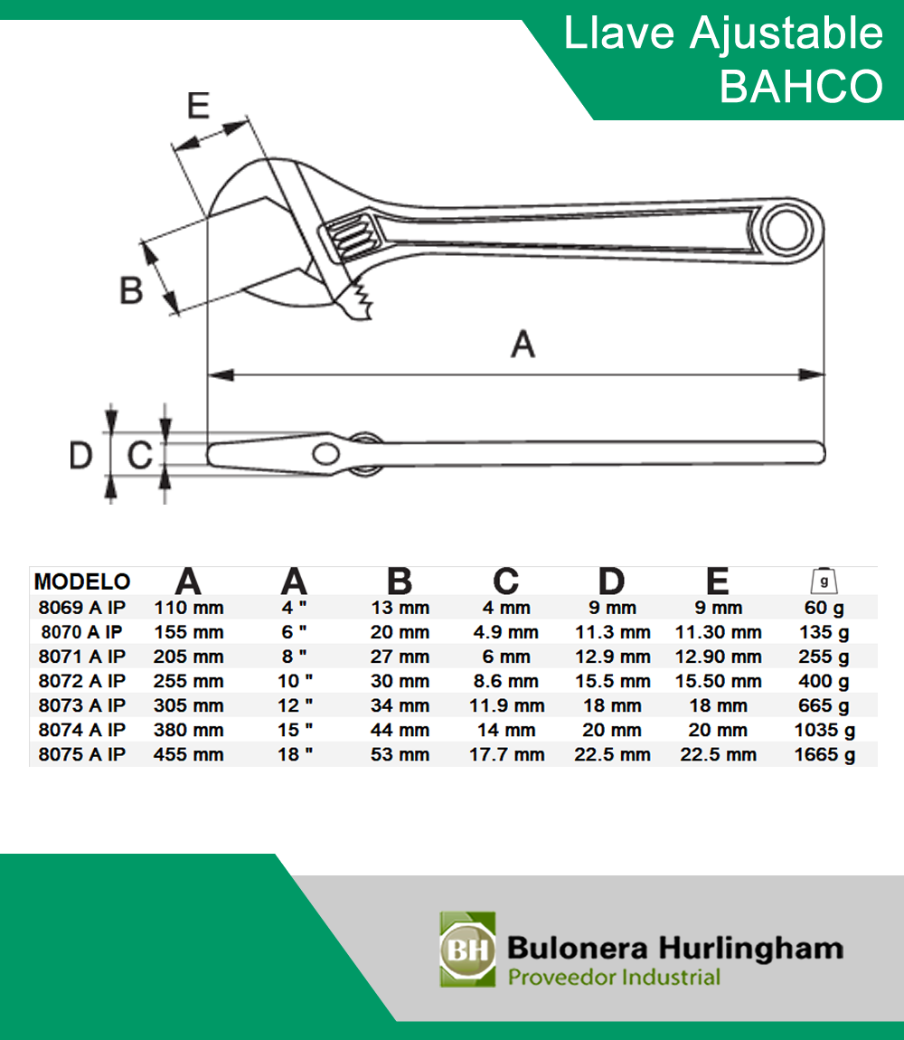 | >BAH10006 | LLAVE AJUSTABLE 6" FOSFATIZADA 8070 A IP -- BAHCO |