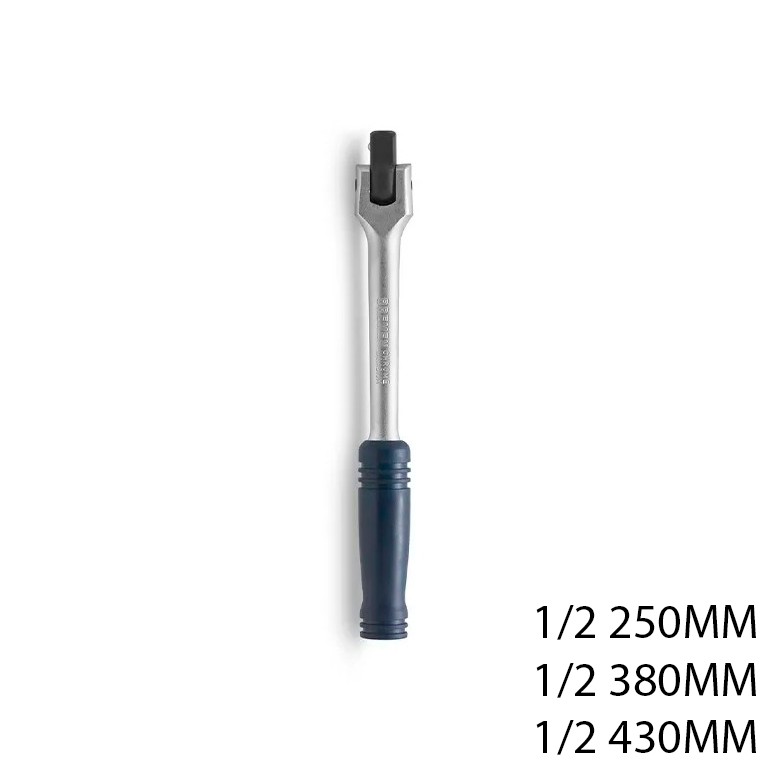 Cabeza Giratoria de 180°: El encastre oscilante permite usar la herramienta tanto de forma perpendicular (para máxima palanca) como de forma vertical (como un destornillador gigante para un giro rápido una vez flojo el bulón).