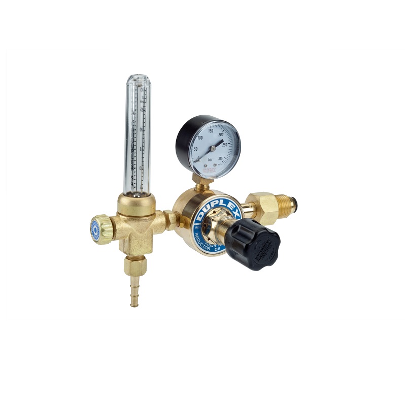 Válvula reductora de presión de diseño compacto y ligero, ideal para equipos de soldadura semiautomática portátiles. Fabricado en bronce de alta calidad, este modelo DUPLEX incluye un caudalímetro de columna graduado para un control visual exacto del flujo en litros por minuto (LPM). Es la solución perfecta para soldadores que requieren precisión en la protección del arco en trabajos de taller liviano, mantenimiento o instalaciones en obra, garantizando cordones sin porosidad con un consumo de gas optimizado.